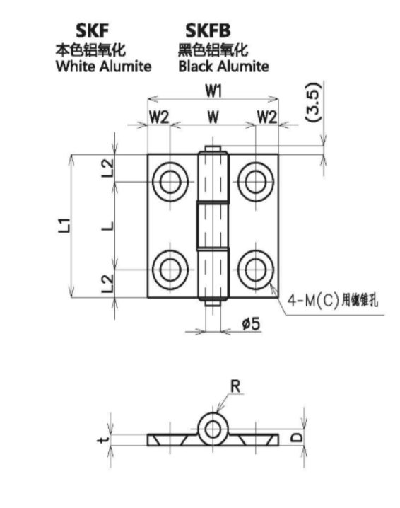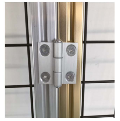 用途:用于安全护栏门的连接及开合,铰链与铝合金型材间用平头螺丝固定。